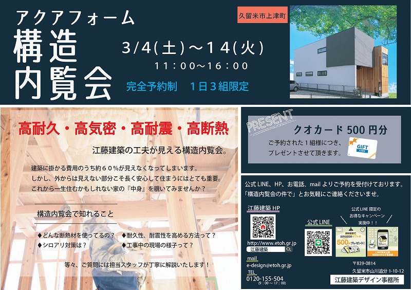 前のページへ久留米市上津町(東)で構造内覧会開催中です!