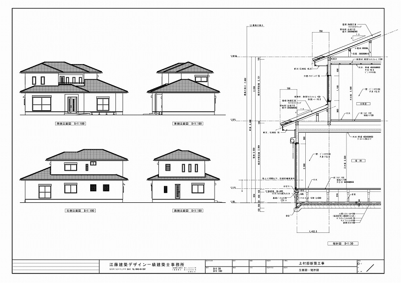 家を建てる前に確認しなければいけない大事な設計図です。なぜなら、この図面は建具の高さ・デザイン・天井の高さを確認してコンセントや家具の配置の計画に絶対必要なんです。コンセントが家具の裏で使えないとか家具が扉にあたるとか完成後に気づくトラブルを未然に防いでくれる頼もしい図面です。江藤建築デザイン事務所では全ての新築・改築・リフォーム工事にこの展開図を作成して打ち合わせさせていただきます。