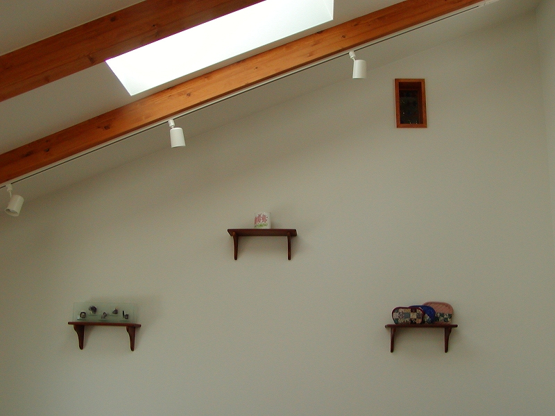 素材が異なる白い外観は、表情を豊かに見せてくれ、照明でより暖かい雰囲気になります。 内装は、木製の飾り棚で囲まれており、天窓から自然の光が照らされ、解放感があります。 リラックスできる温もりある雰囲気を作り出しています。