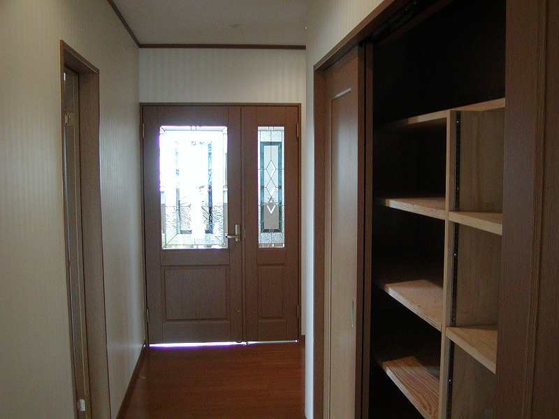 上下に分けた二世帯で、玄関も2カ所設置しました。プライベートを配慮したアイシネン高断熱の家です。